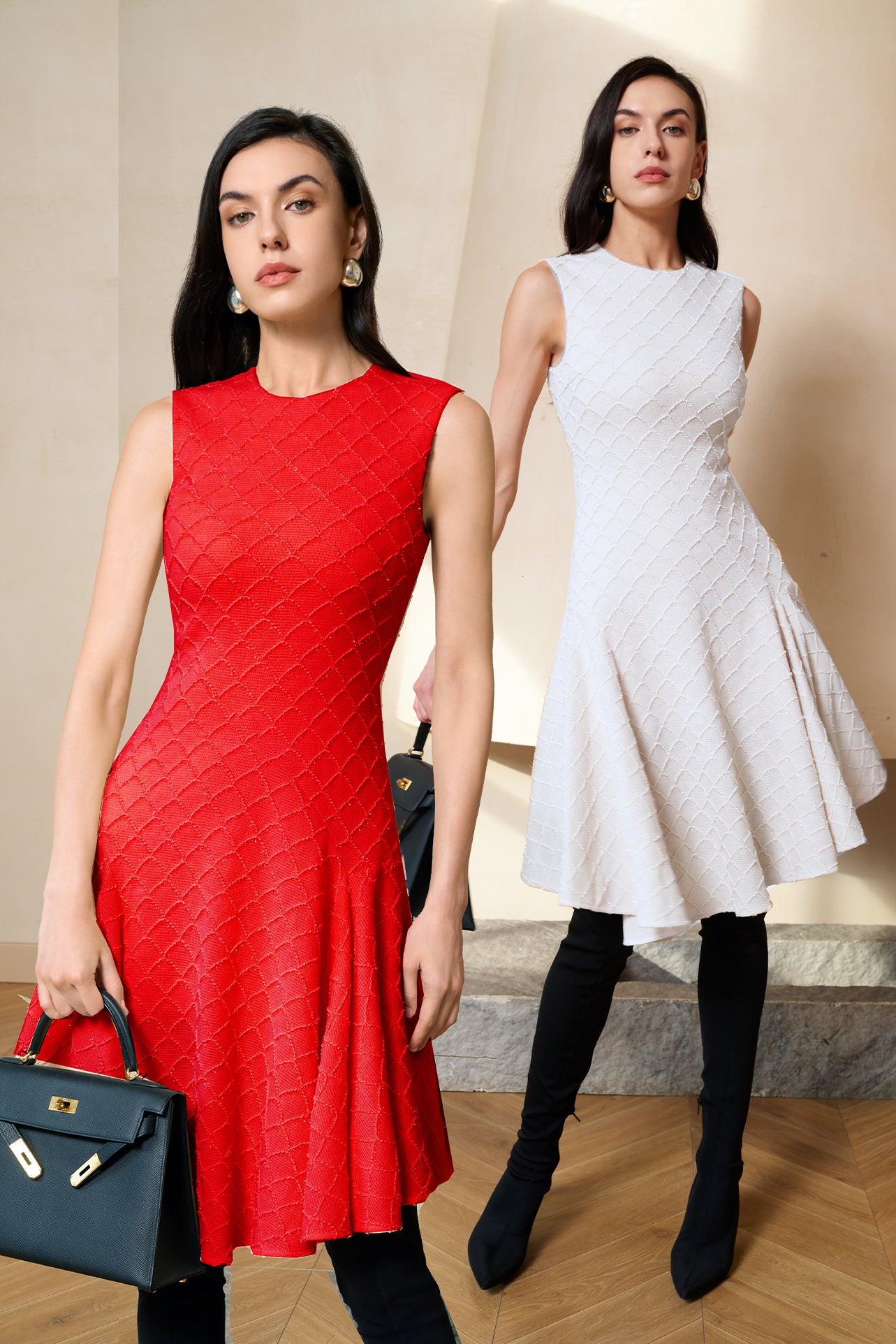 NAVY KNIT CONTEMPORY MOCK-NECK DRESS