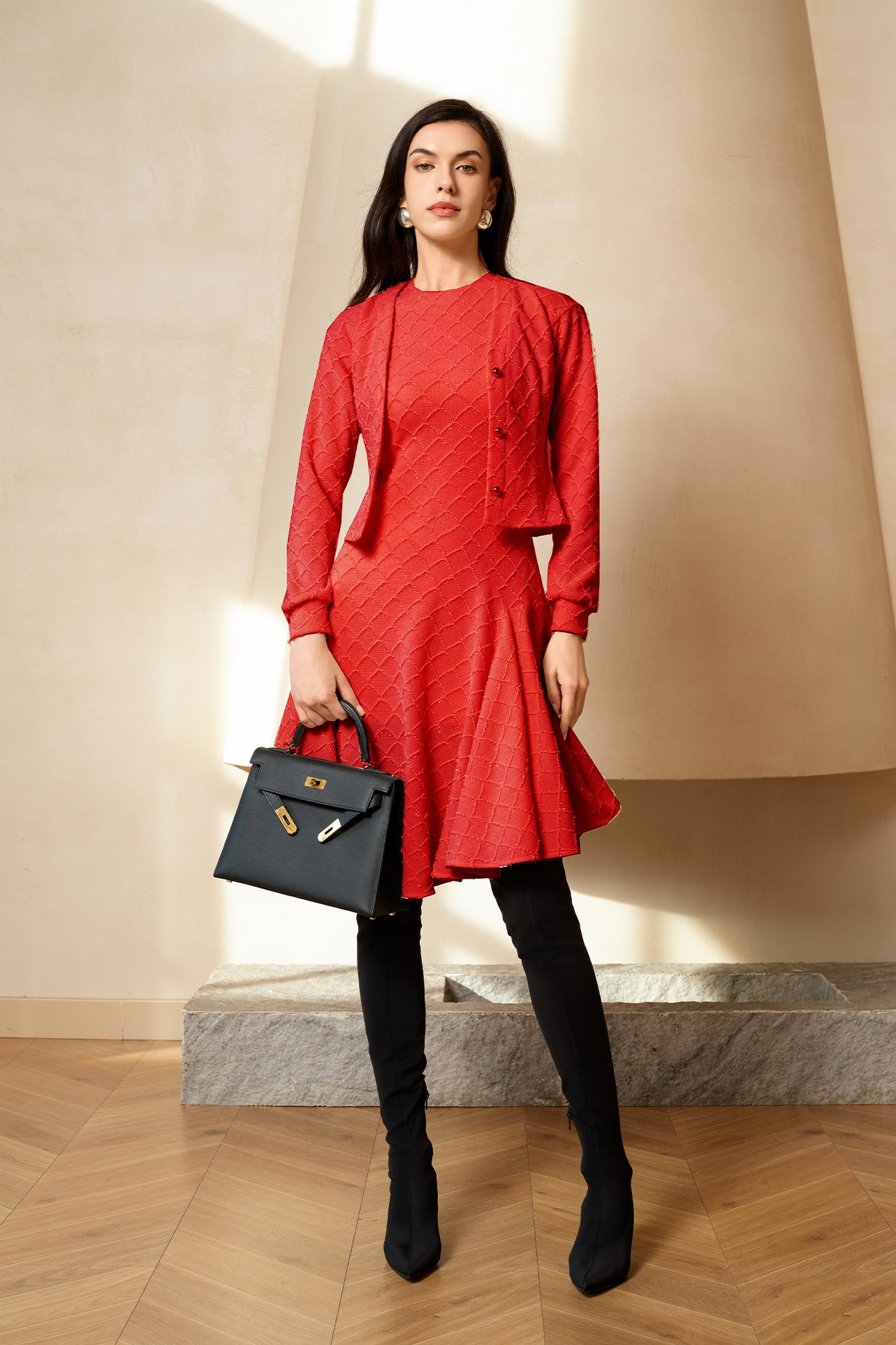 TRIACETATE BLEND WOOL ASYMMETRIC NECK DRESS