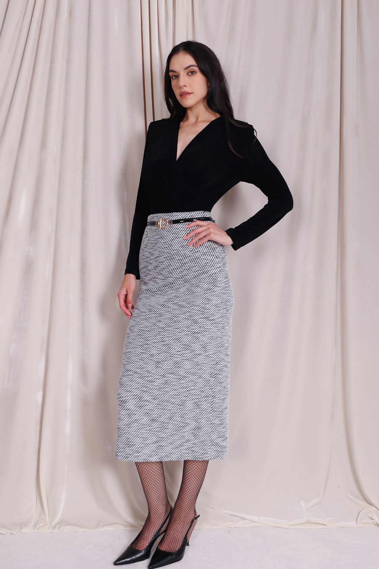 The simple pencil skirt design is timeless and elegant, remaining a classic regardless of changing trends.