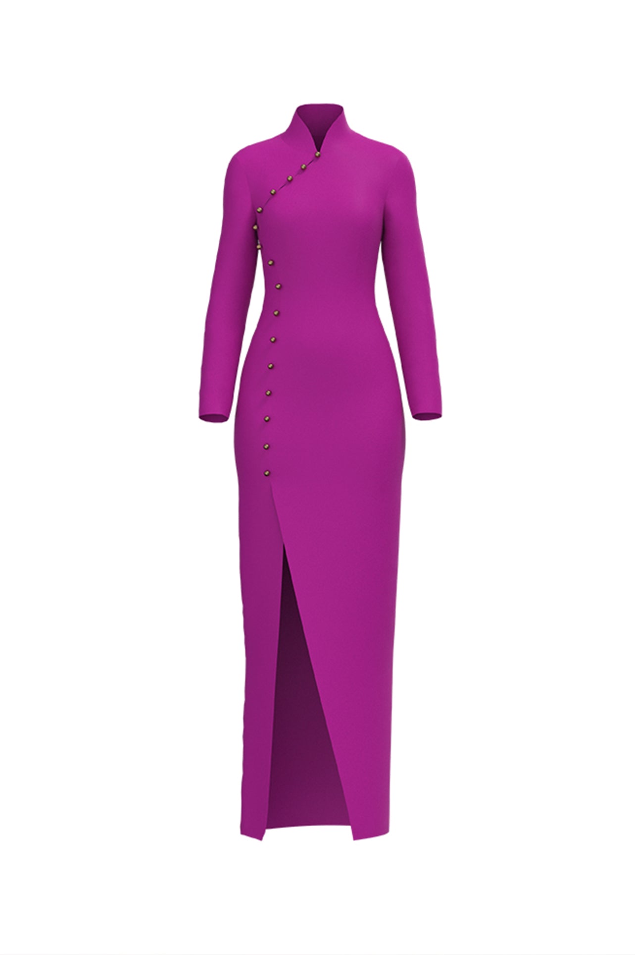Eleganza orientale: abito lungo con spacco in qipao viola