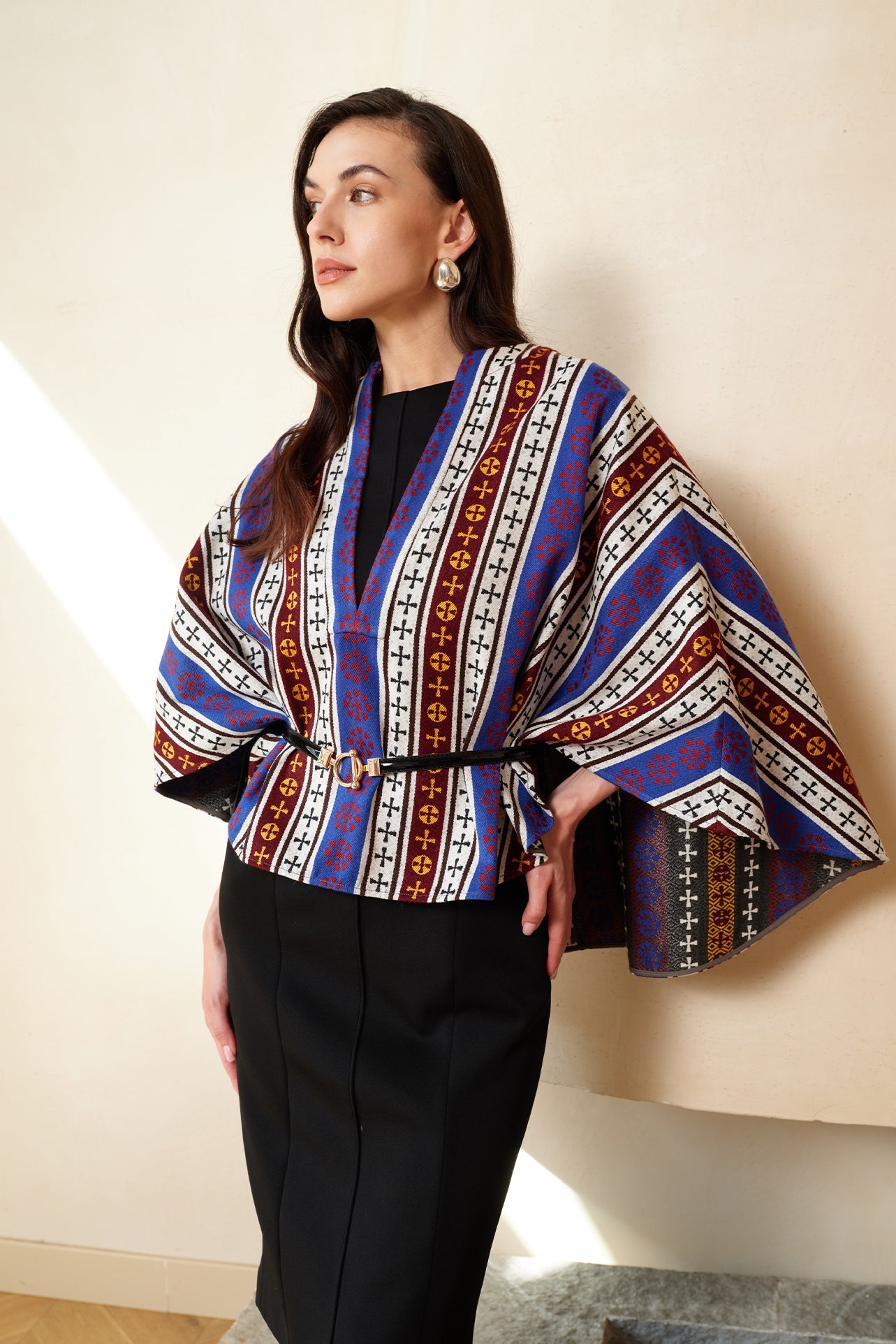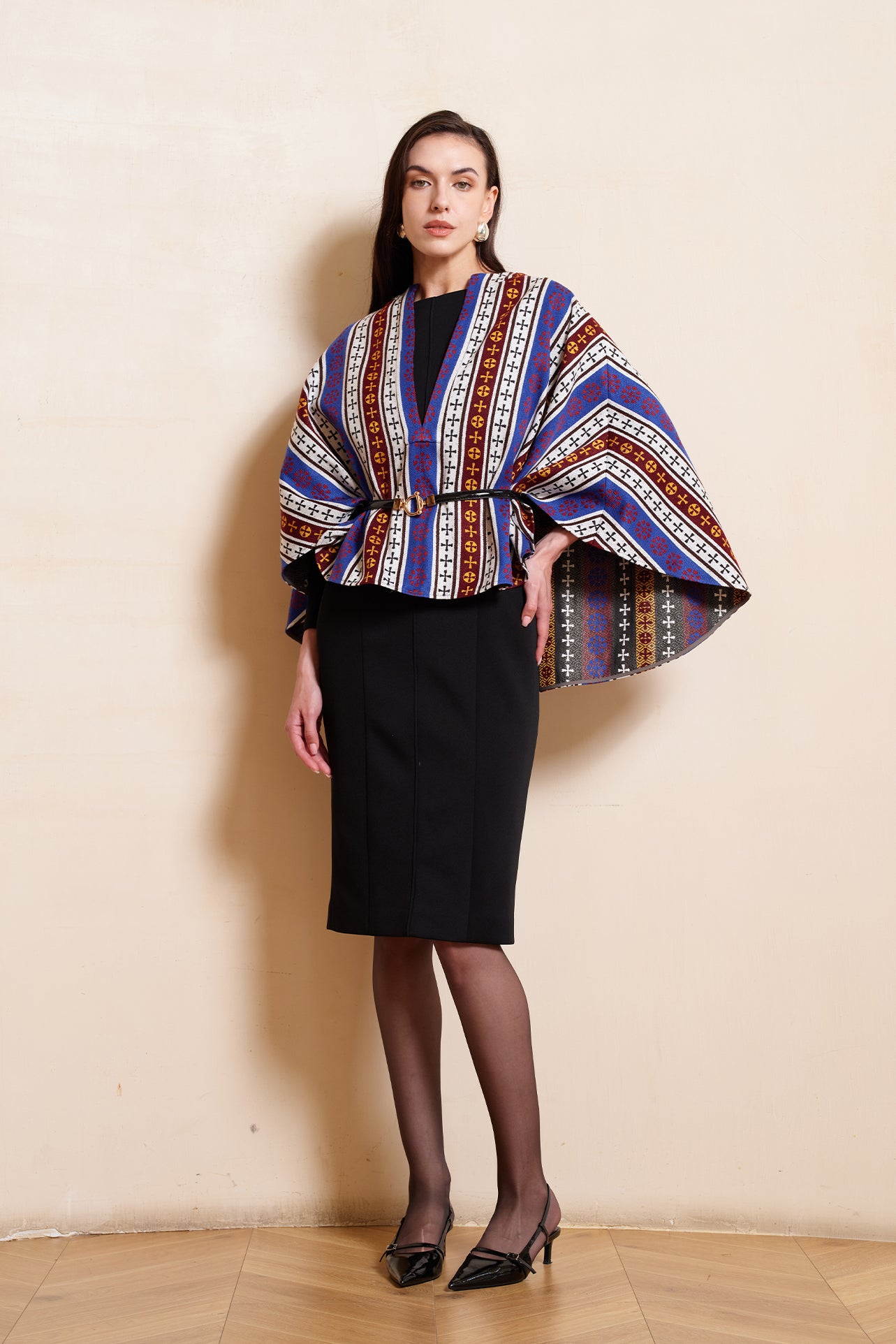 COLOR-CLASH STRIPED JACQUARD CAPE