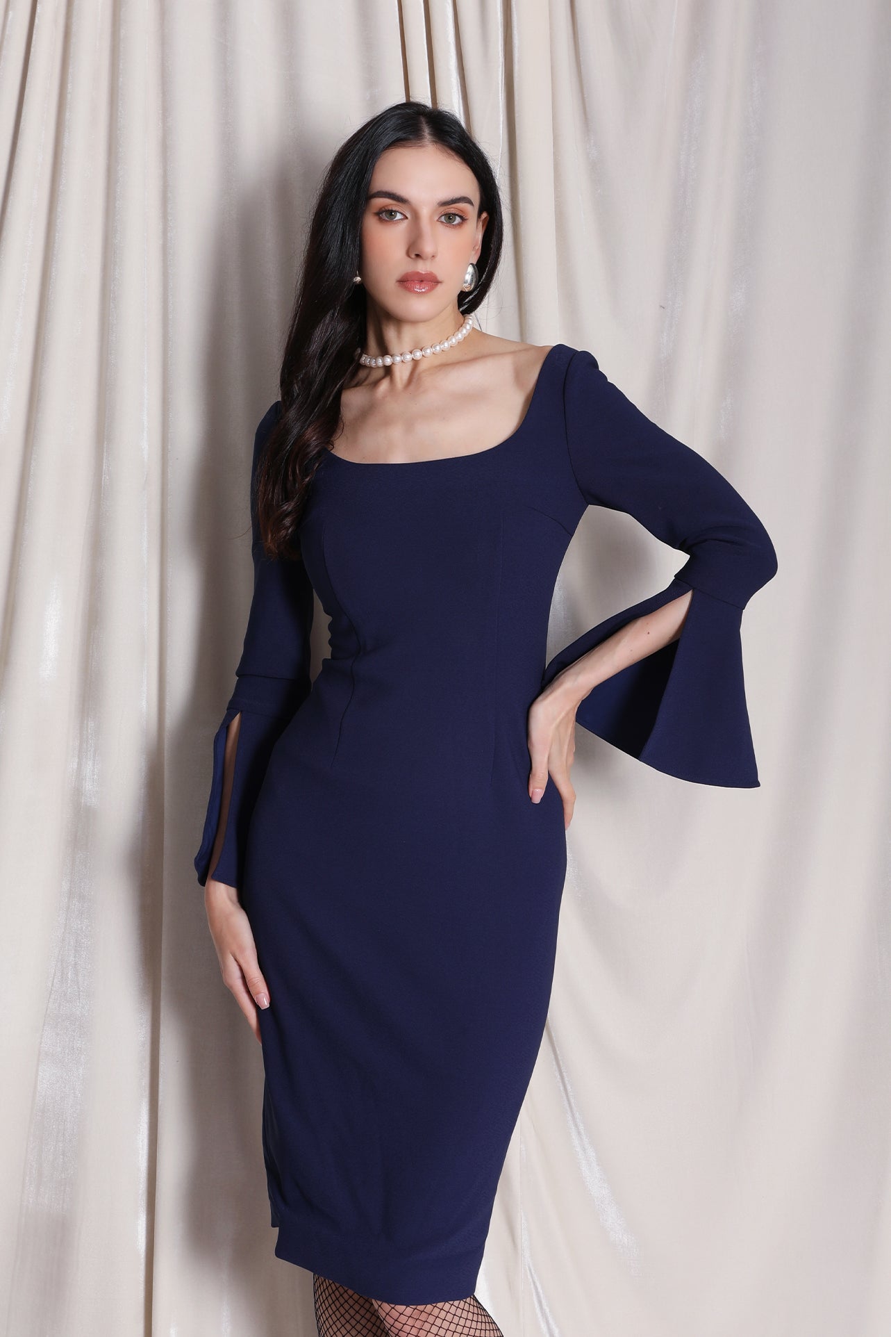 ROUND-NECKLINE DRESS IN GREY BLUE