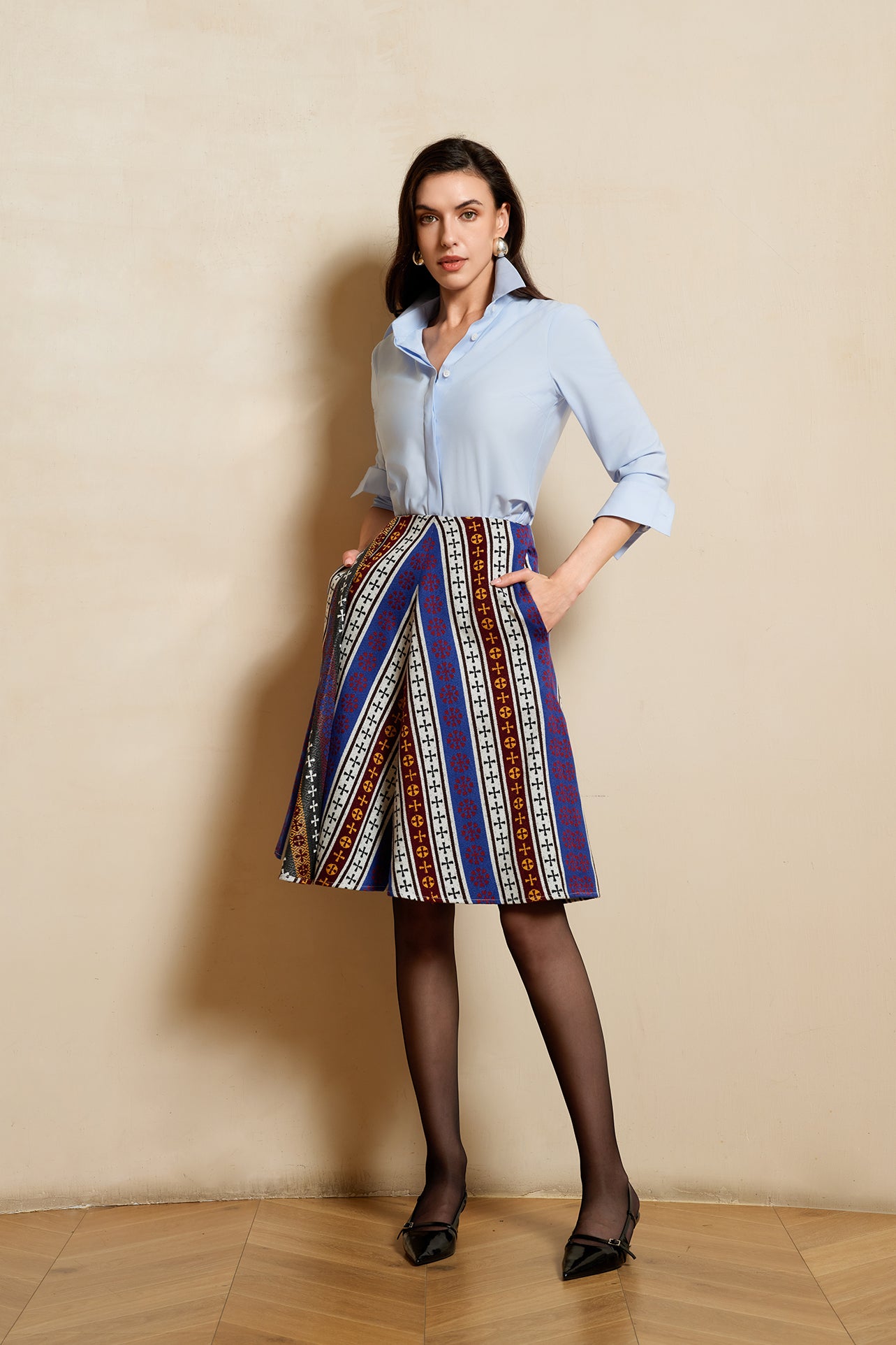 COLOR-CLASH STRIPED JACQUARD SKIRT