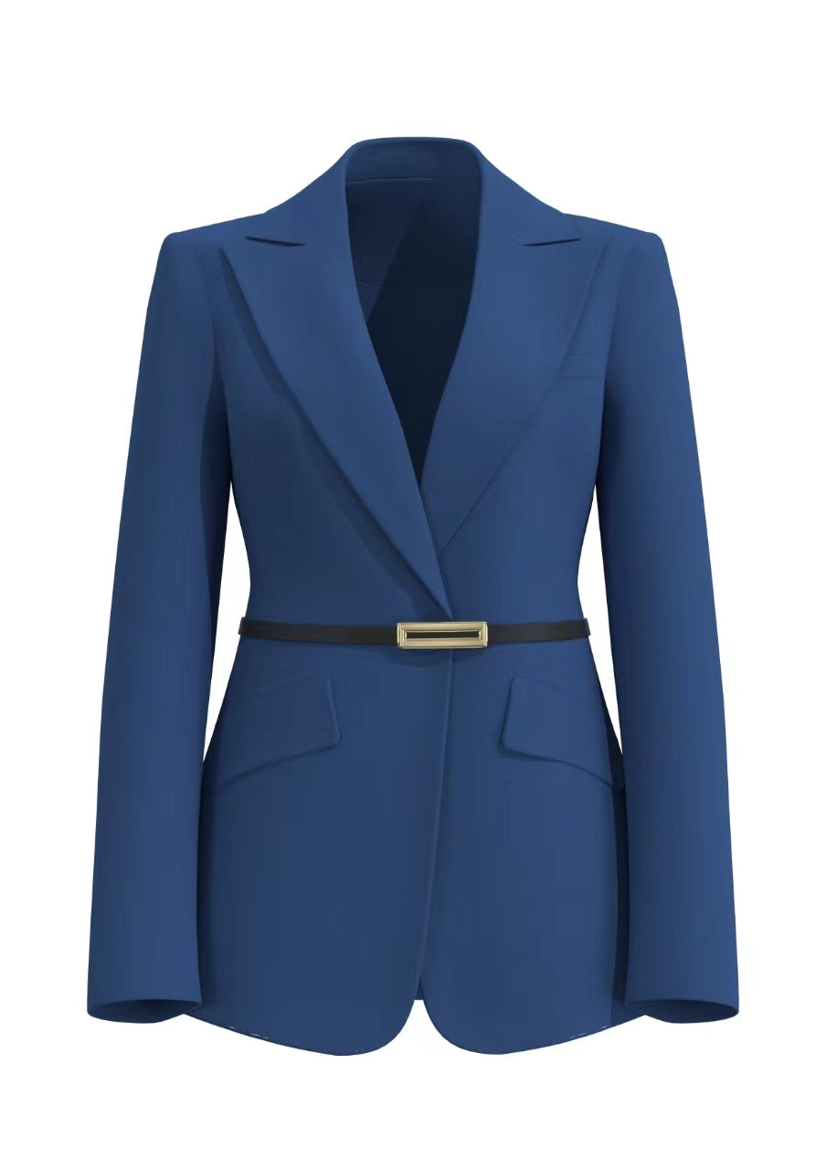 訂製垂墜夾克以精緻優雅為基礎。這款夾克採用深藍色羊毛剪裁面料製成,輪廓簡潔,前袋細節。與配套的褲子、牛仔布或絲綢洋裝搭配,打造現代風格的考究工作服。