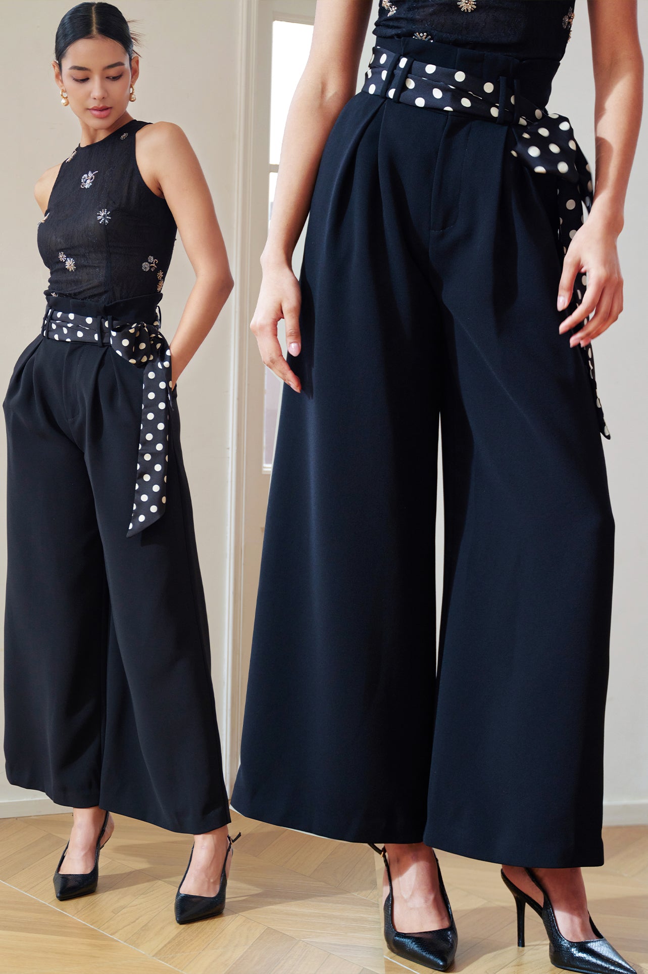 The wide-leg cut flatters your silhouette with stylish sophistication